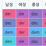 독일어에서 가장 어렵다는 문법!!! 그 중에서 가장 쉬운 the 부터 알아보자 the의 종류가 무려 16개 ㄷㄷ 어렵다면 처음에는 der die das만 외우도록 하자. 그 다음은 A의 변화형 외울 엄두가 안난다.... ein만 알고 넘어가자 다음은 동사의 변화형! 일단은 현재형만 생각하자 아니면 머리가 터진다 단수 복수 1인칭 -e -en 2인칭 -st -t 3인칭 -t -en 언어라는게 반드시라는 것은 없어서 독일어에도 상당한 불규칙이 많은 것 같다.규칙 외우기도 힘든데 불규칙은 언제 다 외우려나... 출처 https://librewiki.net/wiki/%EB%8F%85%EC%9D%BC%EC%96%B4%2F%EB%AC%B8%EB%B2%95
